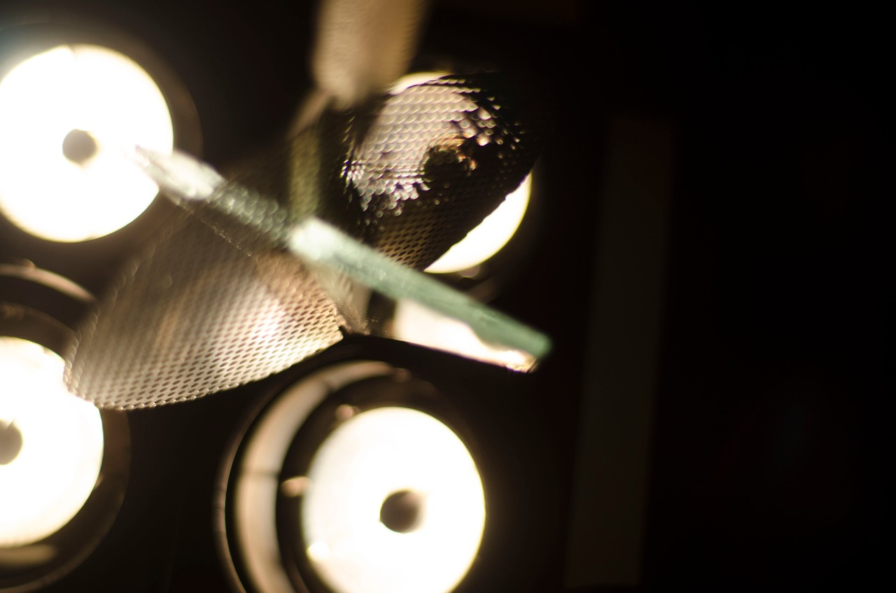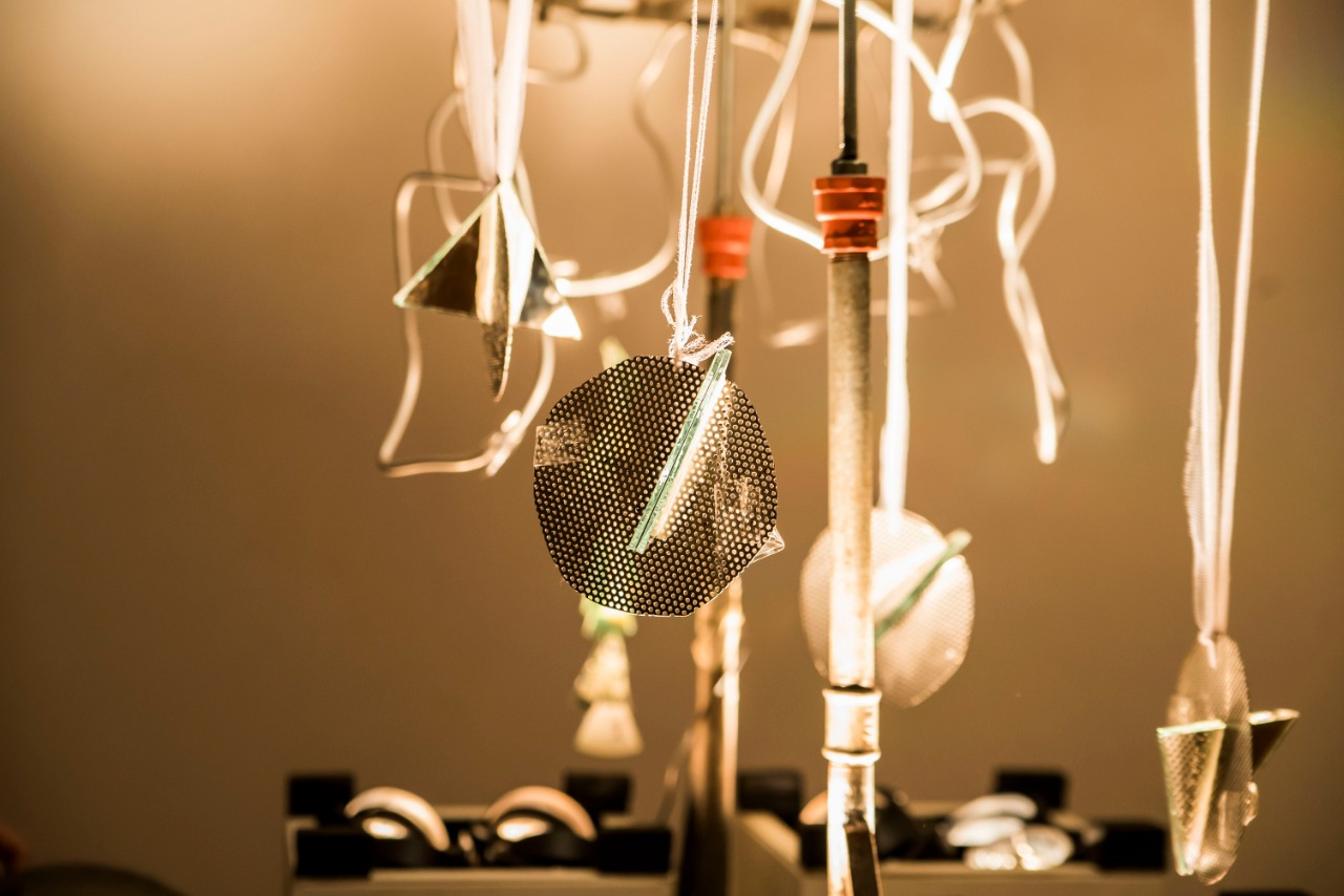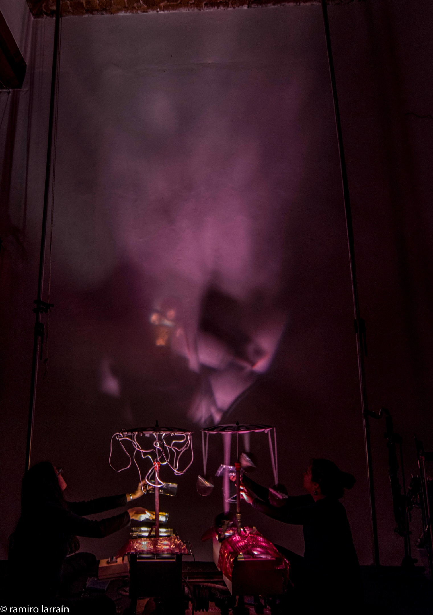 Investigación: Obra multidisciplinar inspirada en las esculturas cinéticas de Laszlo Moholy-Nagy. Proponemos construir una experiencia inmersiva para el espectador a nivel sonoro con música procesada en tiempo real, a partir del diálogo del movimiento lumínico de la máquina y el movimiento de una persona que danza en sincronía con la luz.